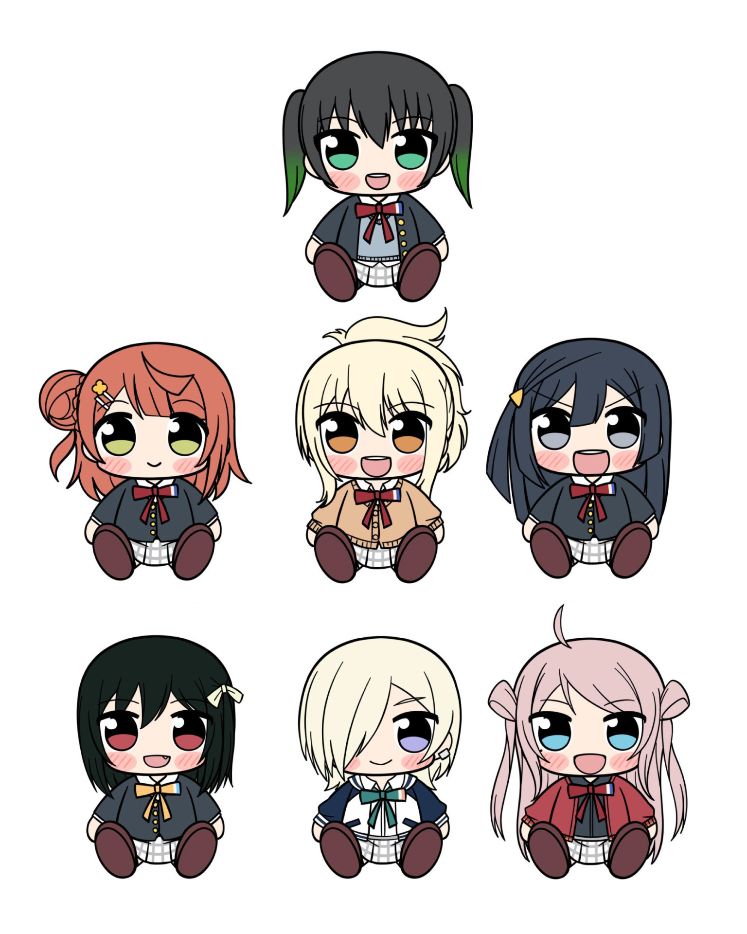 くりくりの大きな目に、メンバーのキャラクターに合わせた表情、コッペパンのようなおおきな足の表現がかわいらしいデザインとなっております!