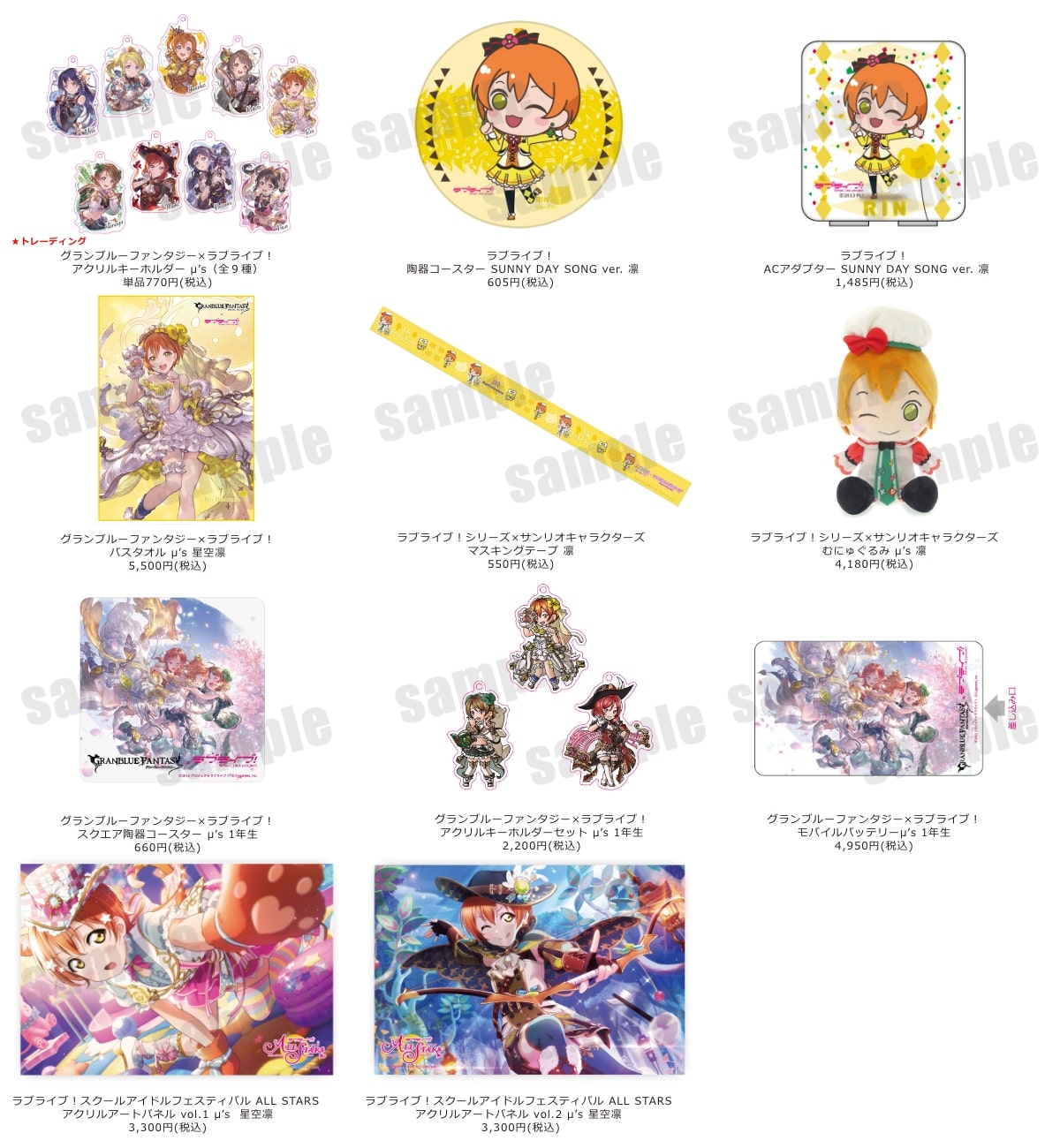 対象期間中に以下の対象グッズを含む1注文につき、「星空 凛」バースデーブロマイドを1枚お付けいたします。