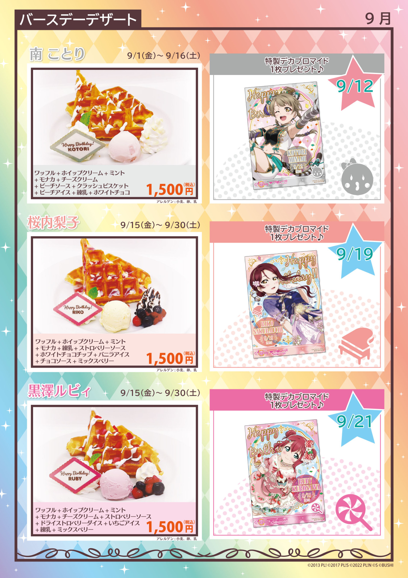 「THEキャラCAFÉ×ラブライブ!スクールアイドルフェスティバル ALL STARS」にて、8月下旬~9月上旬に登場予定のメニューをご紹介!