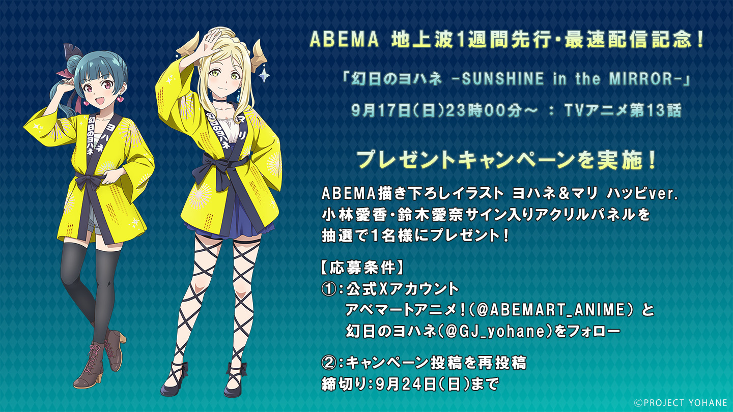 「幻日のヨハネ -SUNSHINE in the MIRROR-」第13話のABEMAでの 地上波1週間先行・最速配信を記念して、