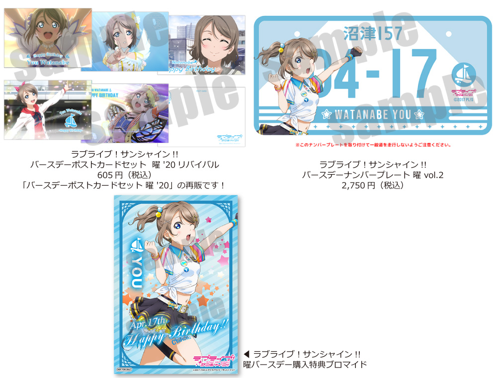 ラブライブ!サンシャイン!! プレミアムショップBiVi沼津店では、4月17日に誕生日を迎える渡辺曜のバースデーグッズ販売とバースデーブロマイド配布を実施します!