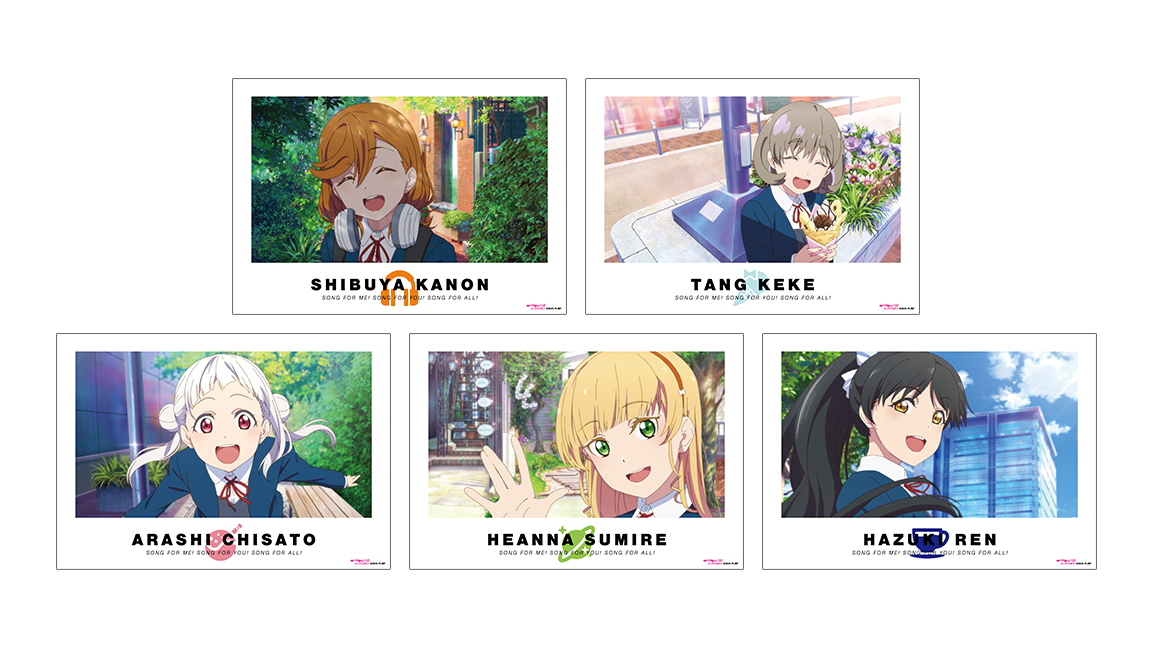 澁谷かのん、唐 可可、嵐 千砂都、平安名すみれ、葉月 恋をA3サイズのマット加工されたポスターに仕上げました。
